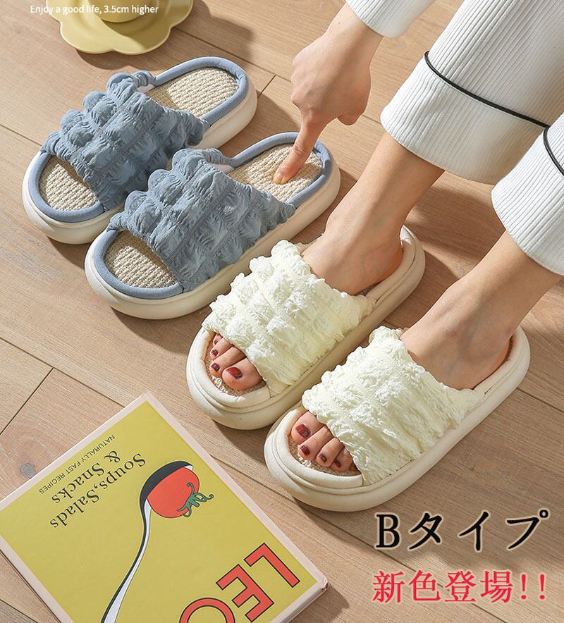 ルームシューズ 厚底 スリッパ レディース 綿麻リネンミュール サンダルつっかけ 春 夏 秋 冬 柔らかい 吸湿 静音 通気 室内履き 上履き オフィス かわいい おしゃれ 快適