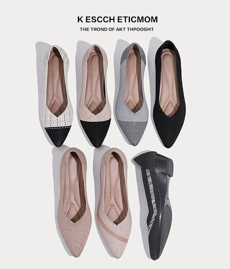 22.0 22.5 23.0 23.5 24.0 24.5 25.0cm ニット素材のポインテッドトゥフラットシューズ レディース ぺたんこ パンプス 痛くない 春夏 脱げない 春夏