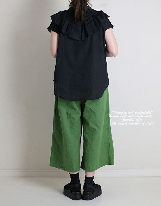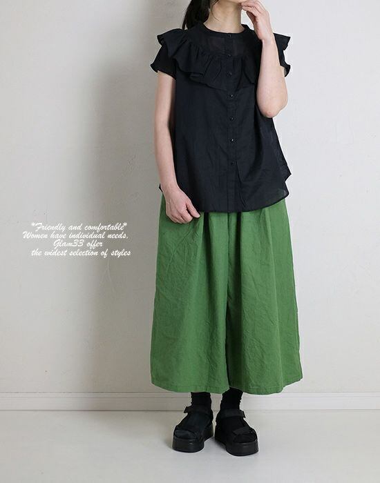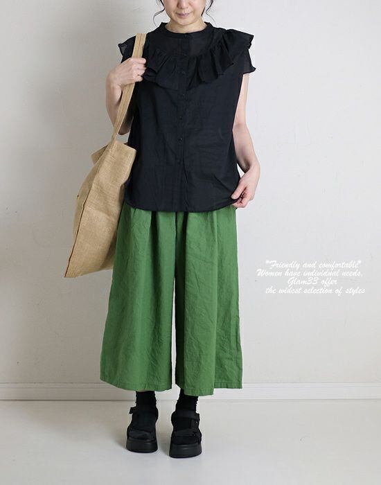 リネン パンツ ガウチョパンツ ガウチボトムス パンツ 44%Offカラー: グリーン カーキ ブルー ブランク グレー