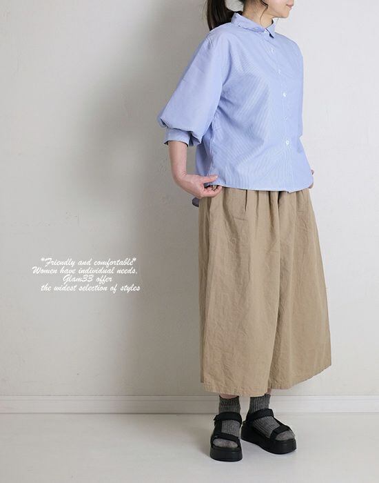 ウエストゴムで履き心地良く、トップスインのスタイリングも映えるドローストデザインがさりげなく可愛らしさを演出。