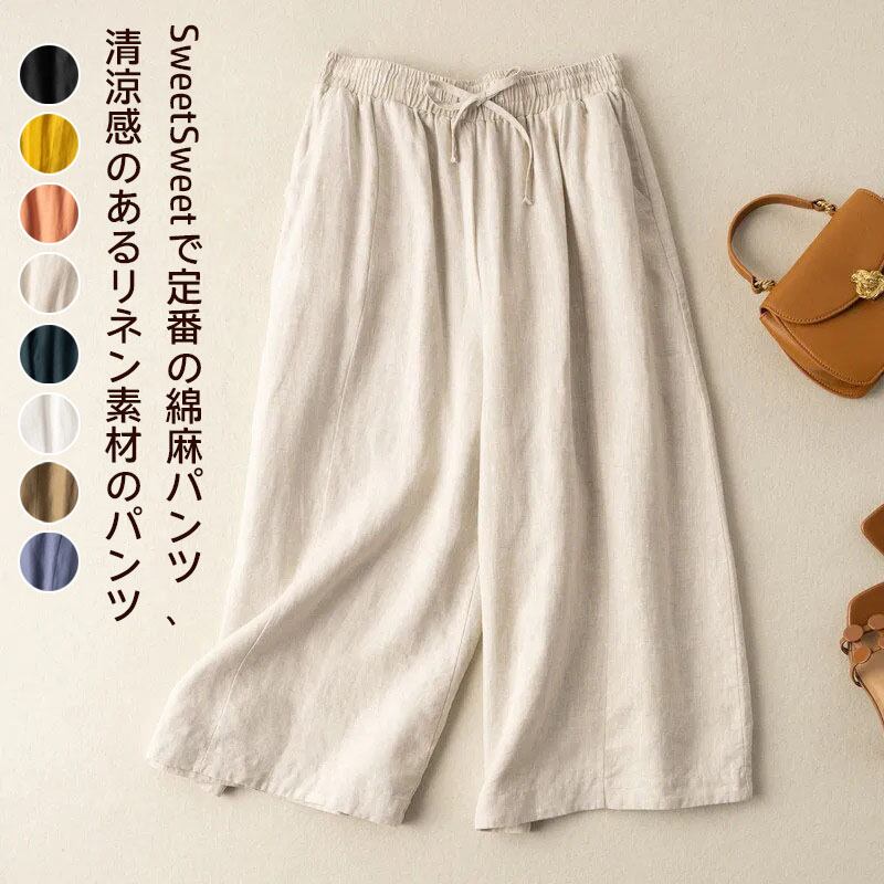リネン パンツ フレア ワイドパンツ リネン パンツ リネンパンツ 7分丈 亜麻 麻 ガウチョパンツ 体型カバー 韓国ファッション レディース ワイドオーガニック ゆったり 大きいサイズ
