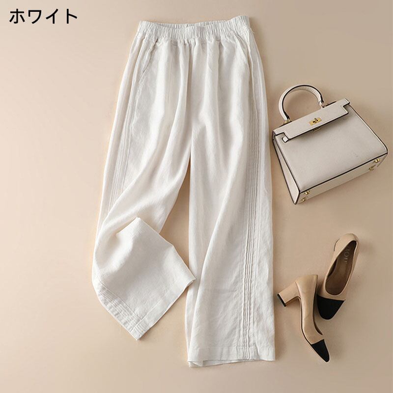 リネン ワイドパンツ ウエストゴム レディース 麻 サイドポケット ゆったり ナチュラルパンツ ヴィンテージリネン M L 3XLサイズ 春 夏秋 体型カバー ボトムス 大きいサイズ