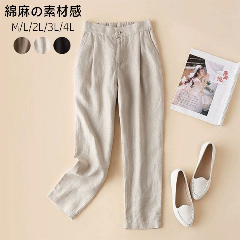 リネン パンツ フレア ワイドパンツ ボトムス パンツ 割引サイズ: M L 2L(XL) 3L(2XL) 4L(3XL) カラー: ベージュ ブラック ブラウン