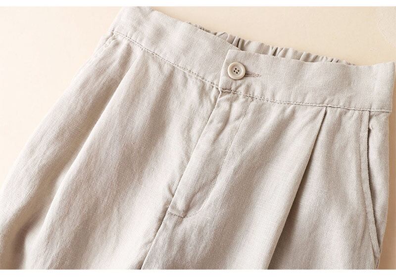 綿と麻をブレンドした生地で、涼しげな素材感とナチュラルな質感の風合いがあって、サラッとした穿き心地。