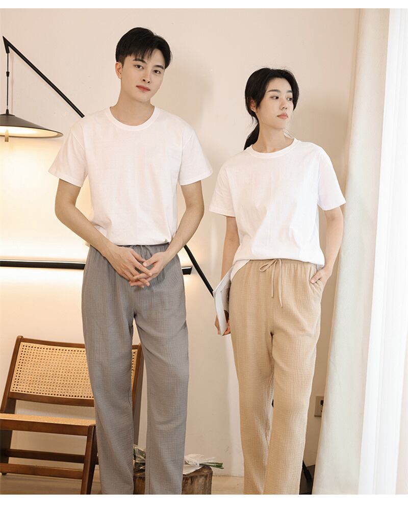 綿100% ルームパンツ ダブルガーゼ ルームウェア 部屋着 パジャマ ナイトウェア ロングパンツ レディース メンズ ペアルック ポケット付き やわらかい ひも付き リラックス 春 夏 秋 シンプル