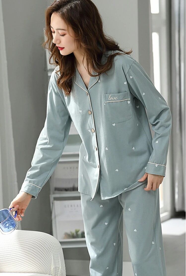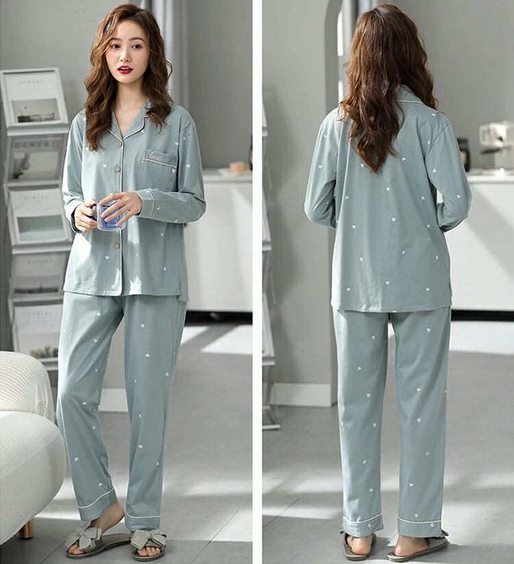 ルームウエア パジャマ レディース 綿 コットン 長袖 長ズボン 春 夏 秋 上下セット 部屋着 寝間着 通気性 前開き 冷え性対策 柔らかい 暖かい 肌触りがいい 8color