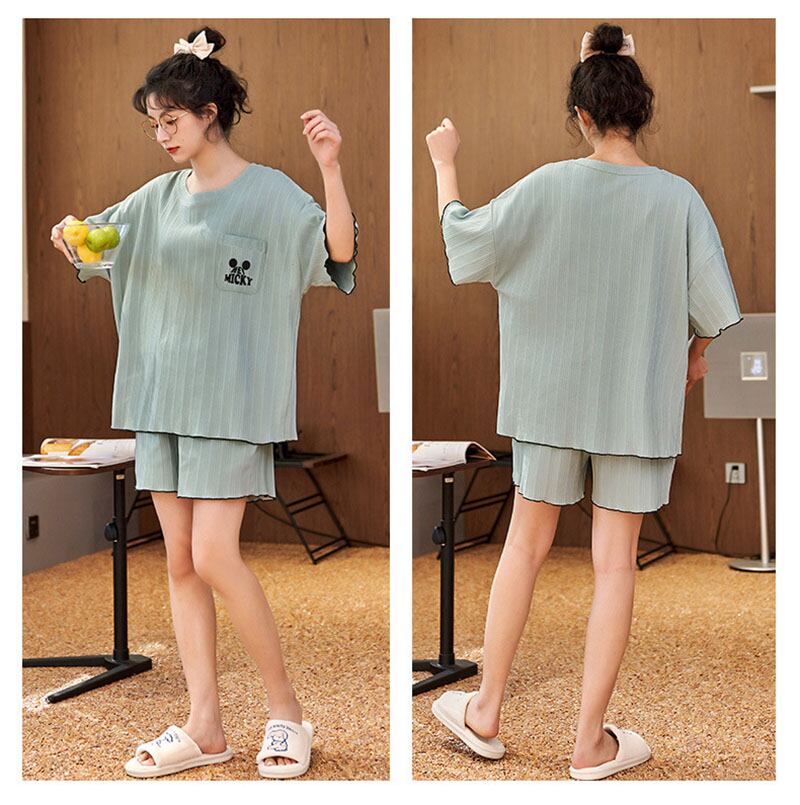 パジャマ レディース ルームウェア 綿 セットアップ かわいい 半袖 襟なし 夏 上下セット 大人用 ルームウェア 可愛い 入院 5分丈パンツ