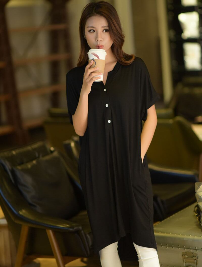ワンピース 部屋着 ルームウェア 半袖COLOR: ブラック ピンク グリーン ライトグレ- レッド ネイビー グレー カーキ