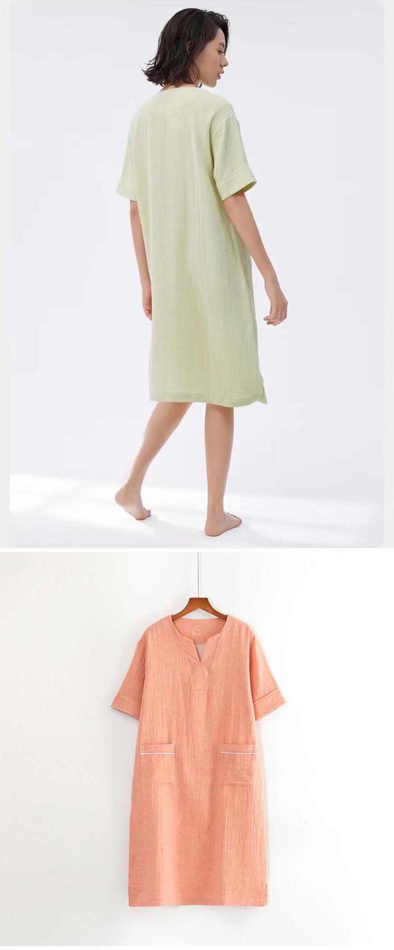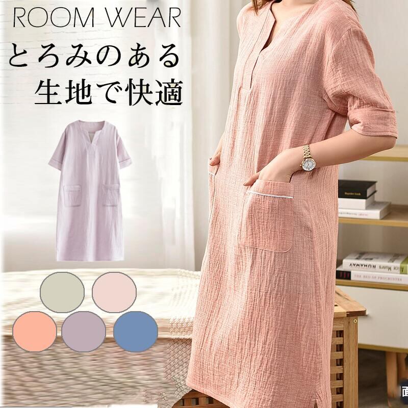 大人気 ダブルガーゼのふわふわネグリジェ 軽くて優しい肌ざわりに気持ちまで華やいでしまいます ルームウエアにも 半袖 半開タイプ