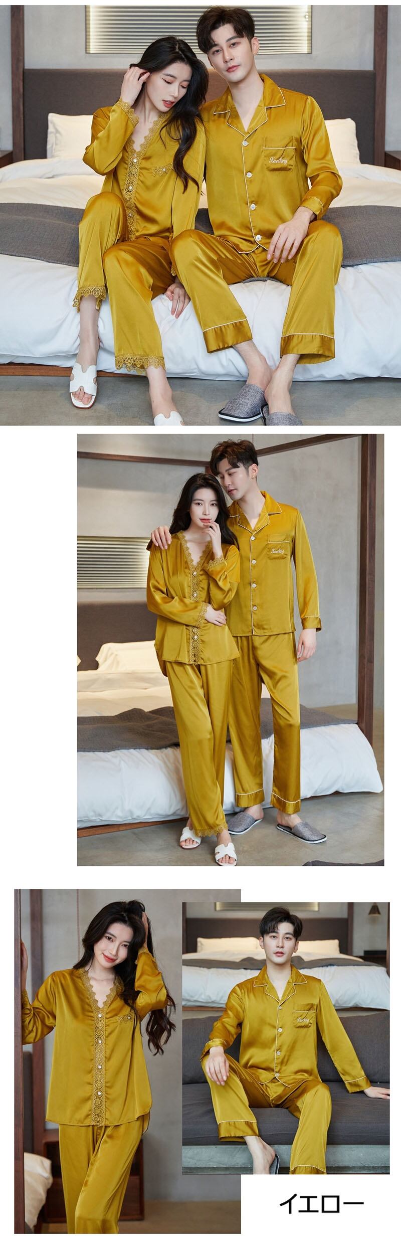 冷感 サテン ペア パジャマ お揃いルユニセックス ナイトウェア ルームウェア 豊富な品揃えhorizontal-key: ブラック ブルー イエロー ワイン vertical-key: 男L 男XL 男XXL 男XXXL 女M 女L 女XL 女XXL