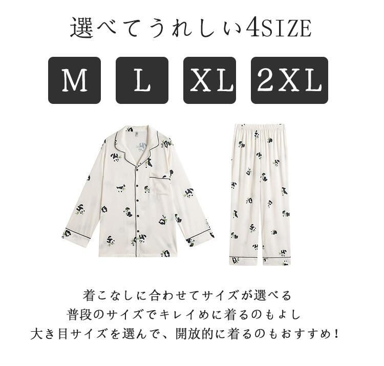 ルームウェア レディース panda 上下セット サテン パジャマ 長袖 S M L XL 柔らか 春 夏秋冬 前開き おしゃれ 可愛い 母の日 ギフト プレゼント 可愛 ゆったり 無地 部屋着 かわ