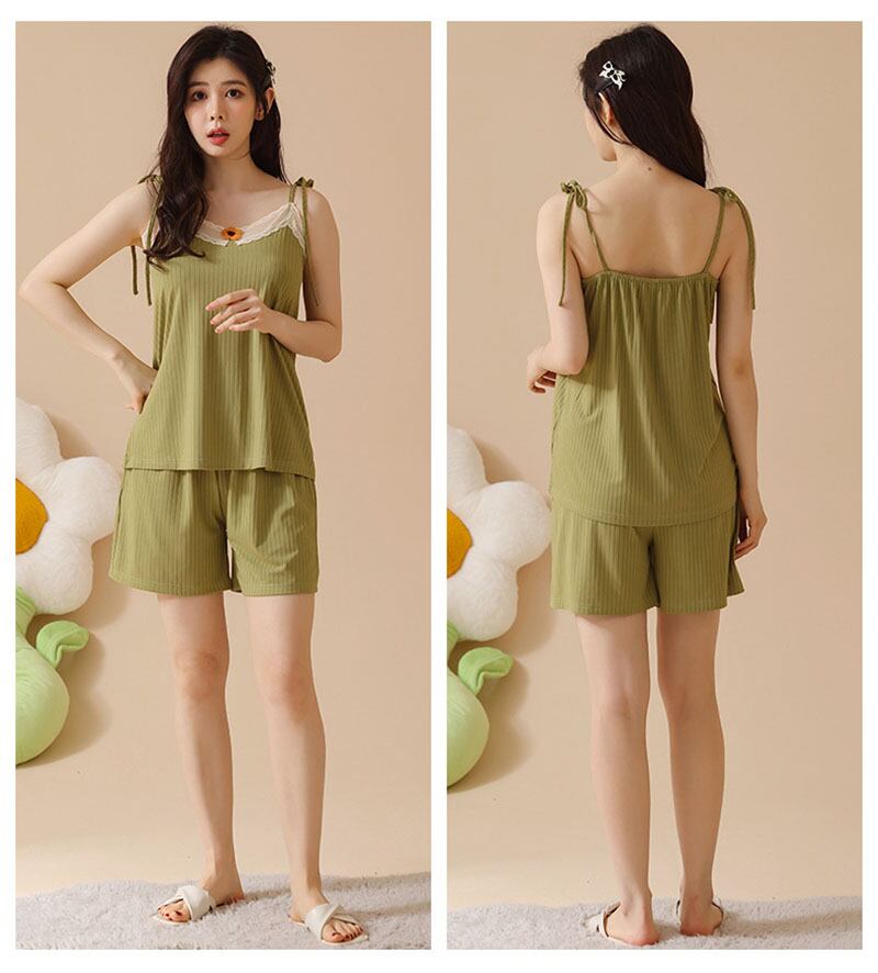 ルームウェア レディース 上下セット パジャマ楽盛りキャミソール リブレースキャミソール&ショートパンツセット パジャマ セットアップ ブラトップ キャミソール 部屋着 綿混 シンプル リブ 無地 可