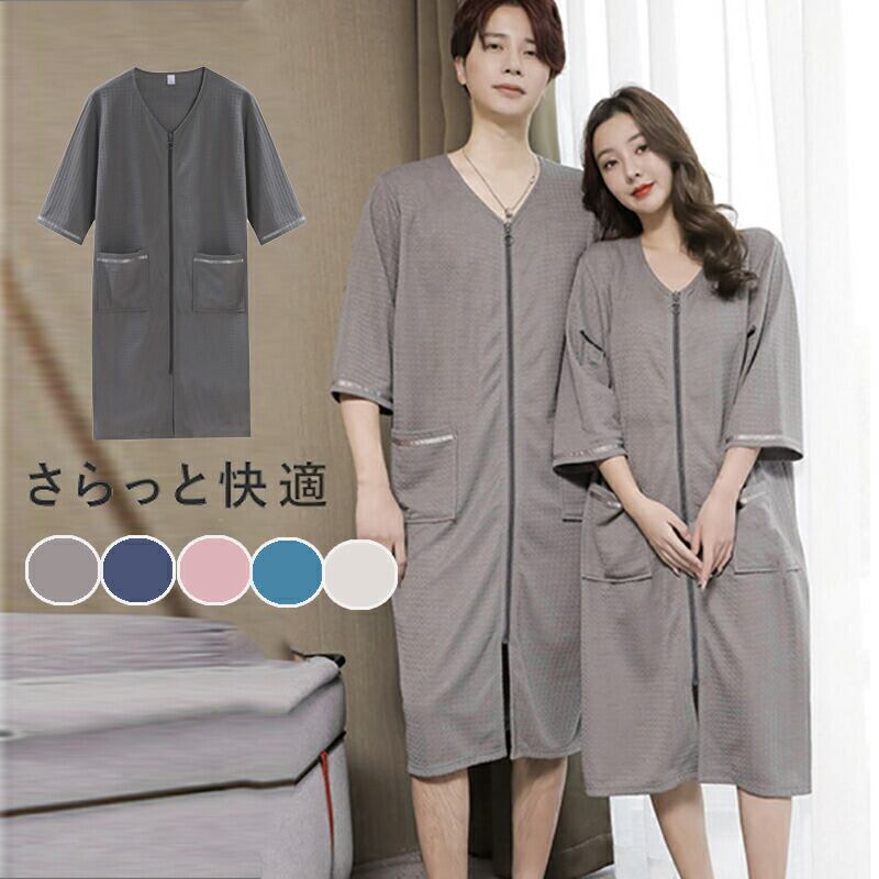 5色 バスローブ 男女兼用 膝丈 ワッフル生地 FOR夏秋 軽量 柔軟 通気 インナー 下着 ナイトウェア レディース ナイトウェア ルームウェア パジャマ