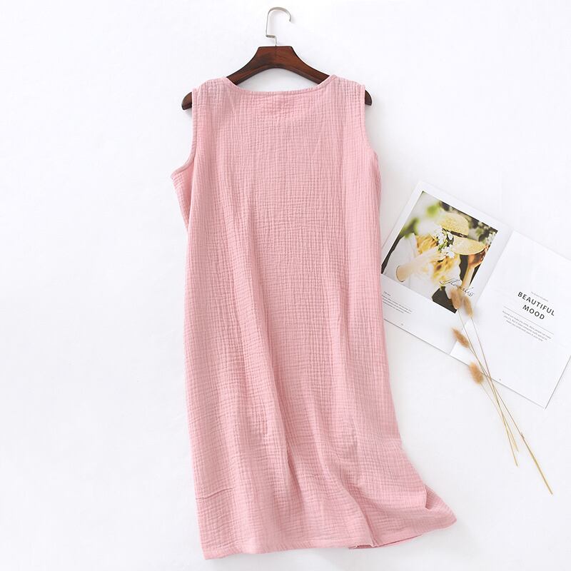 綿100% 部屋着 ネグリジェ ガーゼパジャマ レディース ワンピース ルームウェア ノースリーブワンピース ルームワンピース ノースリーブ 膝丈 コットン 無地 カジュアル ナチュラル