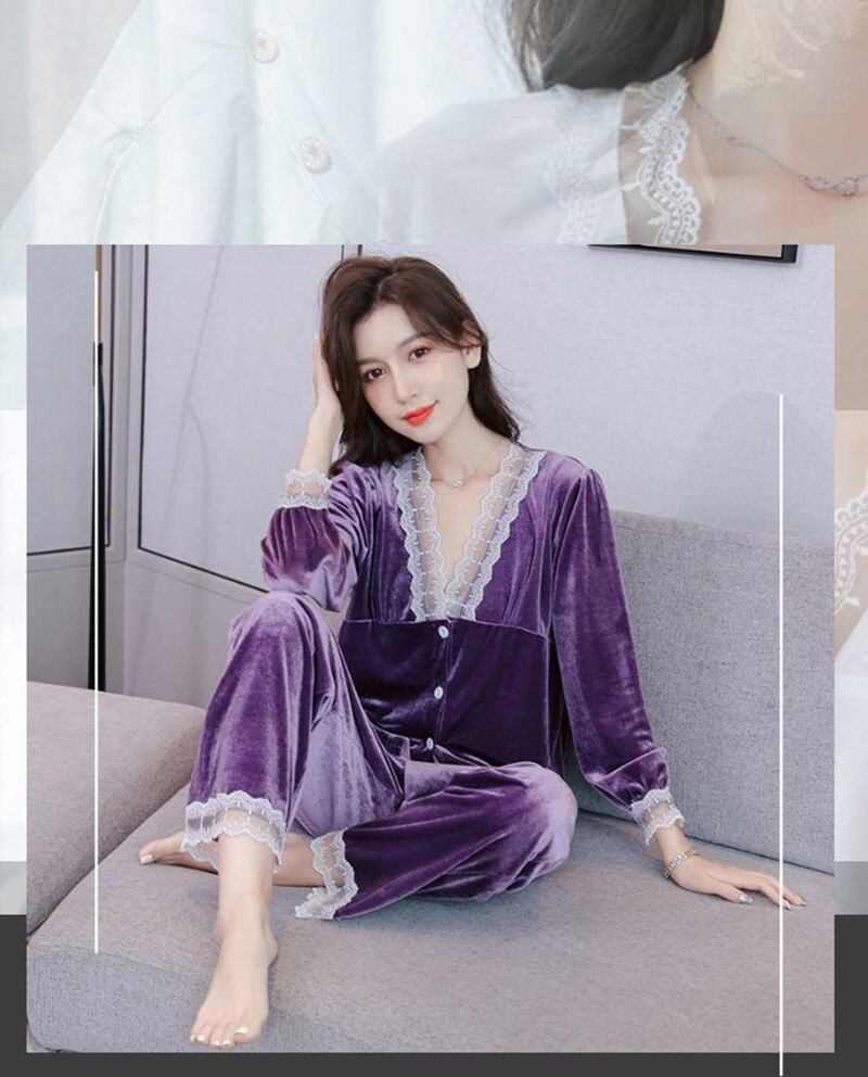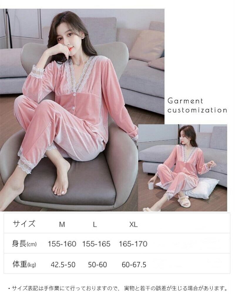 スムーファルームウェアセット ルームウェア セットアップ レディース 秋冬 部屋着 パジャマ ペア 上下セット 長袖vネック 起毛 ベロア調 無地 おしゃれ]選べるM〜2Lサイズ展開