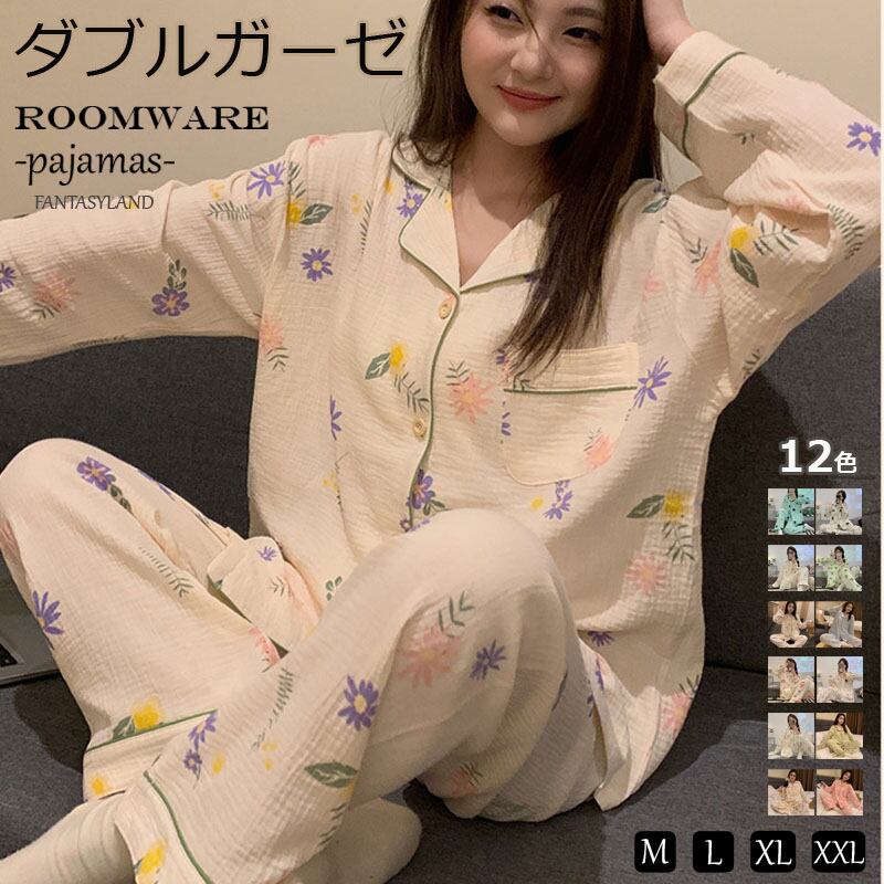 ルームウェア パジャマ レディース 二重ガーゼ 綿100% 前開き 長袖 長ズボンインナー 下着 ナイトウェア レディース ナイトウェア ルームウェア ルームウェア 上下セット
