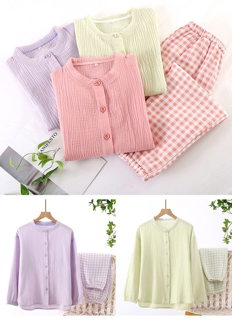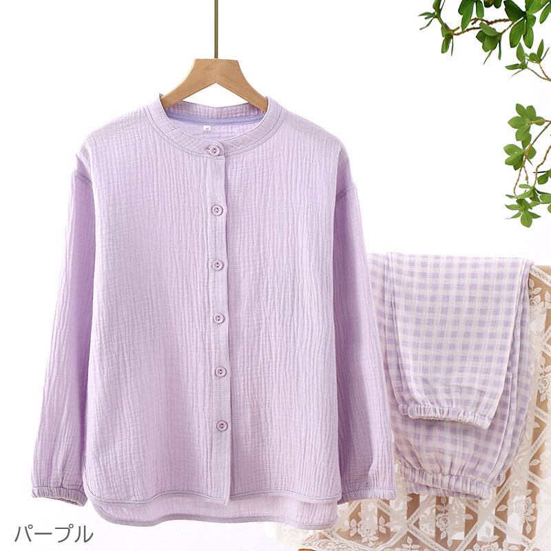 ルームウェア パジャマ メンズ レディース 二重ガーゼ 綿100% 前開き 長袖 長ズボンインナー 下着 ナイトウェア レディース ナイトウェア ルームウェア ルームウェア 上下セット