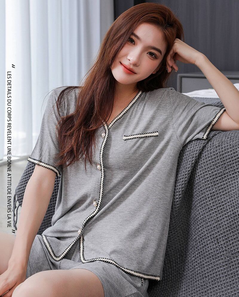 商品説明 綿のレディースの半袖パジャマ上下セット。ボトムは膝下の5分丈程度。