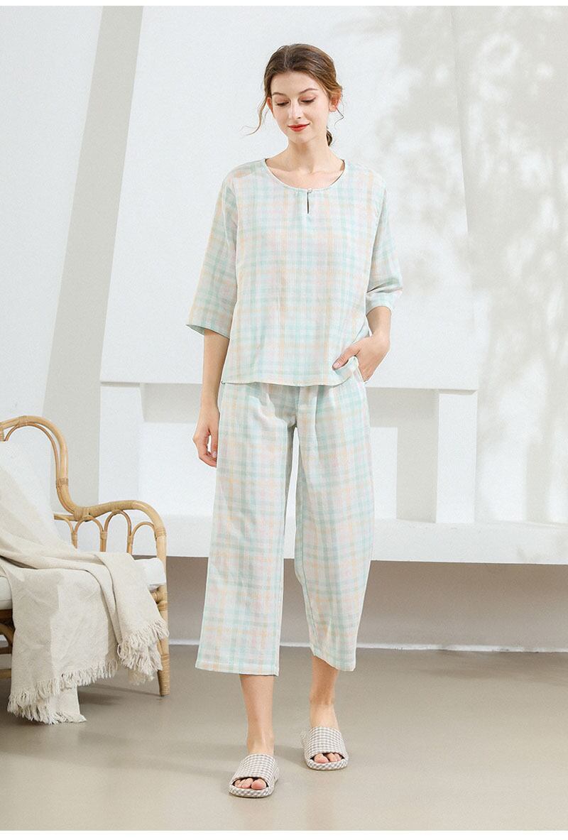 キュート ガーゼパジャマ チェック 快眠パジャマ レディース 上下セットインナー 下着 ナイトウェア レディース ナイトウェア ルームウェア パジャマ