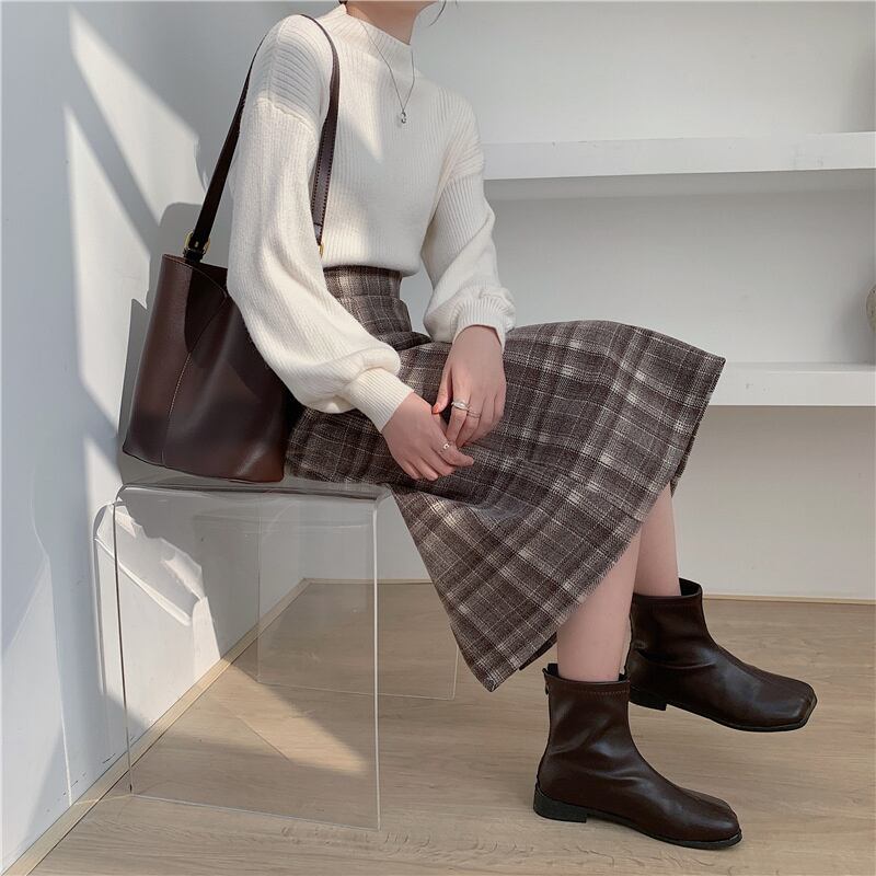 ニット セーター レディース トップス 春 秋冬 長袖 ハイネック ボトルネック パフスリーブ バルーンスリーブ ドロップショルダー 大きいサイズ シンプル リブ アイレット リブニット ライトニット