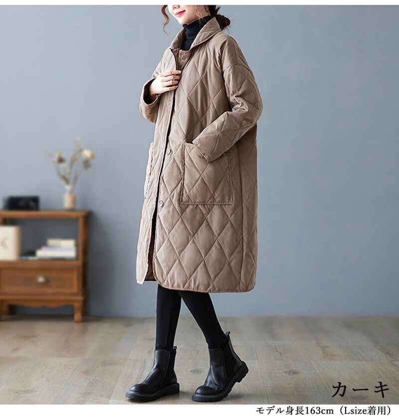 あったかなダウンは毎年の冬定番☆ キルティングコート レディースファッション ロング 長袖 中綿入り 30代 40代 50代