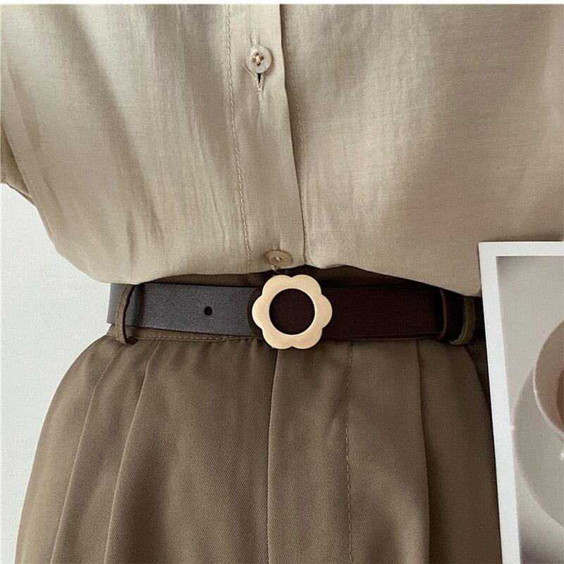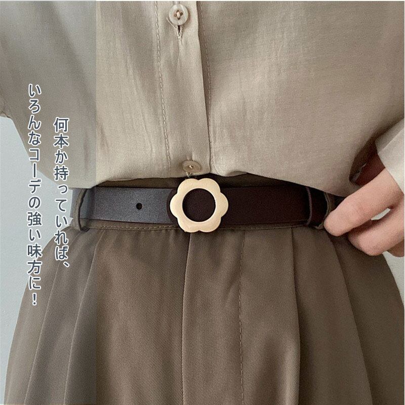 シンプルなベルトに花の形のバックルを組み合わせることで可愛さをプラスしました。
