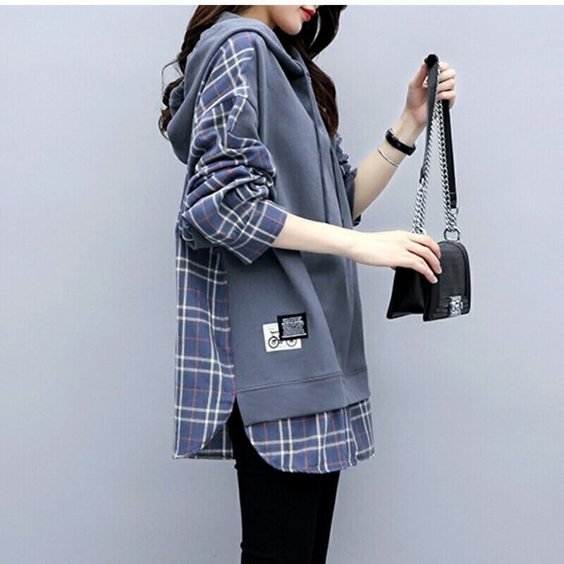 パーカー レディース トレーナー スウェット フード付き 長袖 重ね着風 チェック柄 偽2点 プルオーバー トップスゆったり 春秋 きれいめ おしゃれ