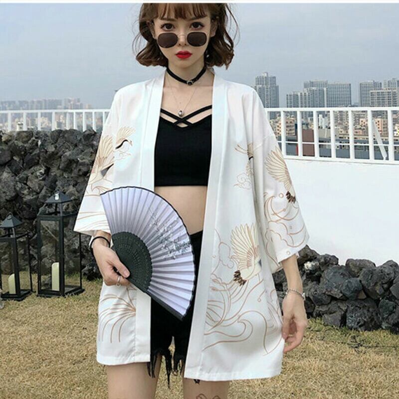 羽織 メンズ レディース 着物カーディガン 開襟シャツ 鶴柄 猫柄 プリント 七分袖 薄手 トップス カジュアル ゆったり 花火大会 夏祭り