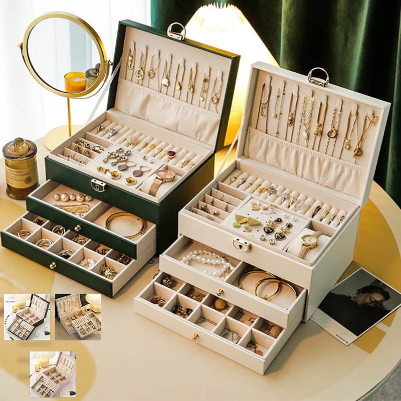 ジュエリー ボックス 大容量 2段 ジジュエリー アクセサリー お買い得saiz: ブラック ホワイト ピンク