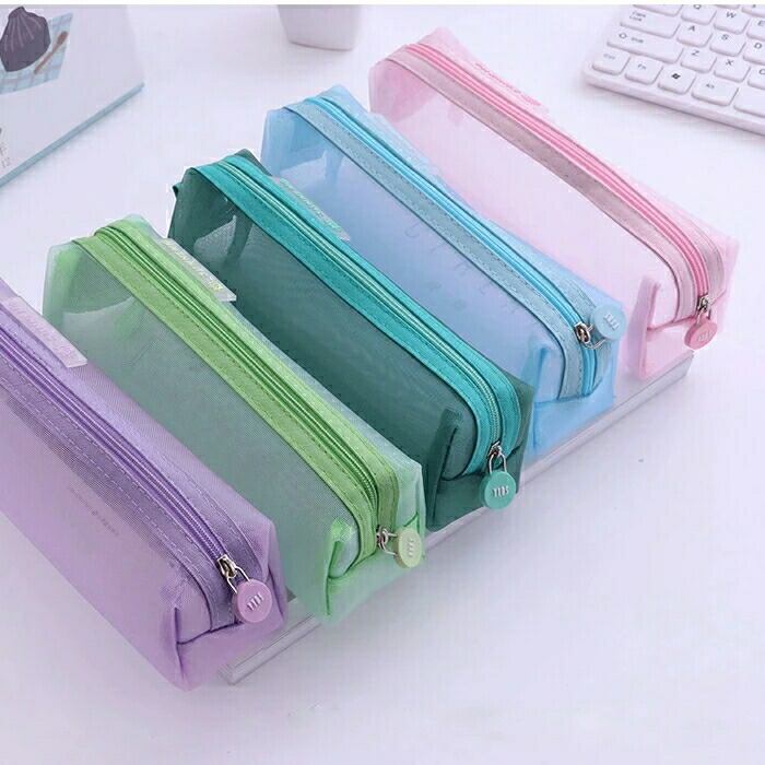 期間限定セール即納 0-2日発送 透明ペンケース メッシュ ペンケース かわいい ピンク シンプル 在庫あり 大容量 クリア ペンポーチ 透明 筆箱 薄型 学生 小物入れ 無地 入学祝い 送料無料 中学生 パープル 白 グレー ブラック 緑 ブルー