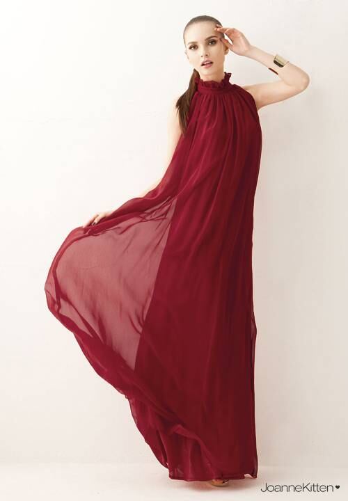 ホルターネックにシフォン素材のロング丈ドレス♪