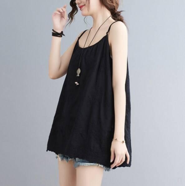 夏のリラックスコーデに最適 キャミチュトップス キャミソール 通販色: 白 黒 サイズ: M L XL 2XL