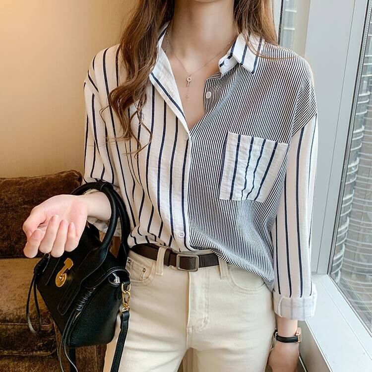 トップス レディース エレガント ストライプ カジュアル 上品 休日 薄手 ブラウス 秋冬 かっこかわいい 可愛い 大人可愛い きれいめ シンプル お洒落 大人女子 20代 30代 韓国 韓国系 韓国風 韓国ファッション オルチャン お揃い 双子 双子コーデ コーデ ファッション カジュアル 大人 上品 学生 通学 通勤 OL ママファッション ママコーデ 公園デビュー ラフ 普段着 おしゃれ お洒落 かっこいい 大人女子 旅行 着回し 普段使い 重ね着 スタイル 楽ちん モテ
