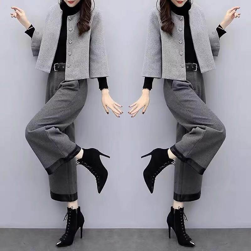 アウター ジャケット パンツ ボトムス スーツ セットアップ レディース ストレートパンツ ワイドパンツ アンクル丈 7分袖 ノーカラー ハイウエスト ボタン バイカラー ツイード かわいい 大人可愛い きれいめ シンプル おしゃれ レトロ こなれ感 ガーリー 抜け感 ラブリー キュート 都会的 無地 秋 冬 お出かけ パーティー イベント 女子会 休日 ショッピング 発表会 カフェ 普段使い 着回し レイヤード トレンド 流行 インスタ映え S M L XL 2XL 小さいサイズ 大きいサイズ グレー