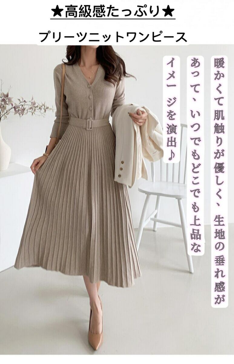 ワンピース ニットワンピース プリーツ フレア Aライン きれいめ 長袖レディースファッション ワンピース