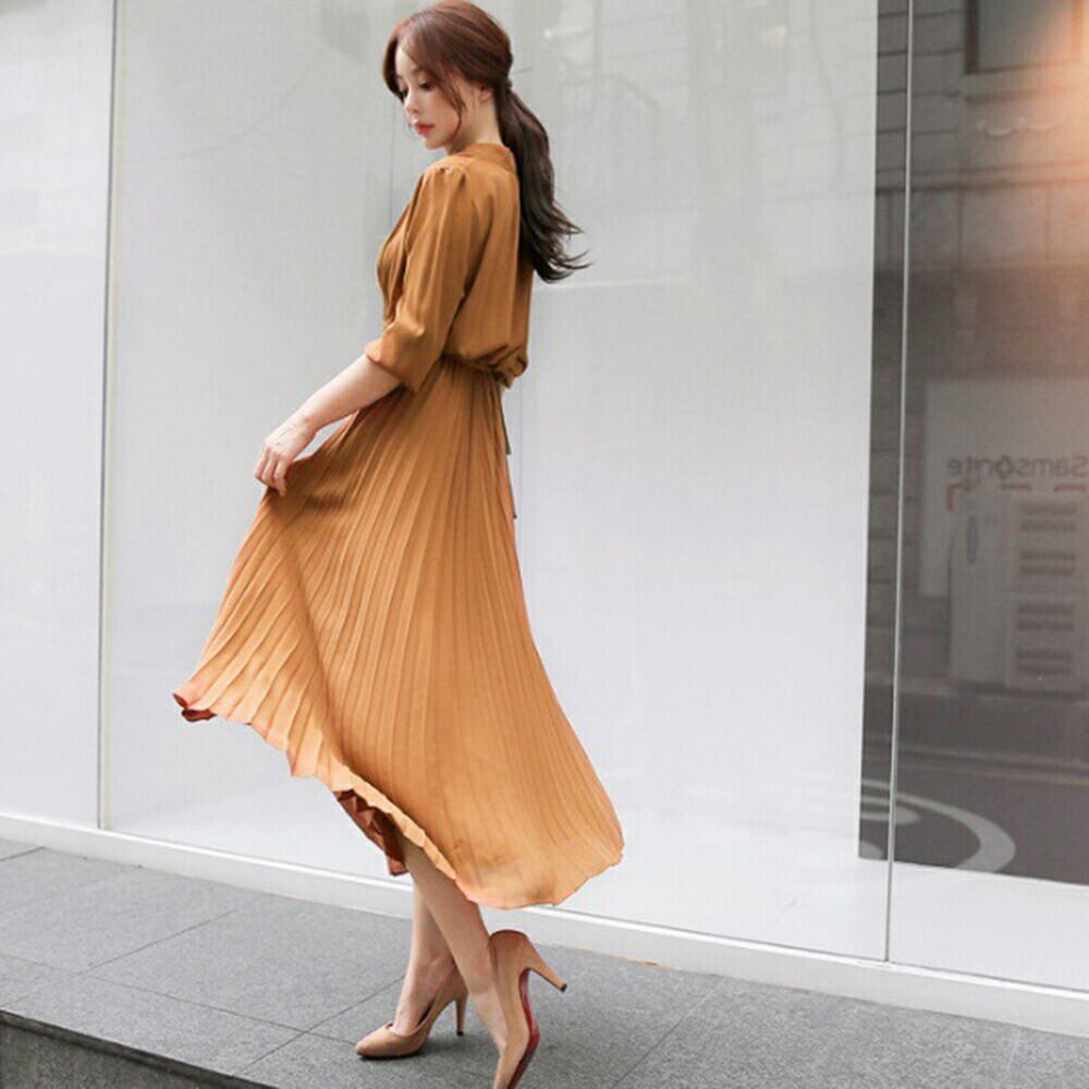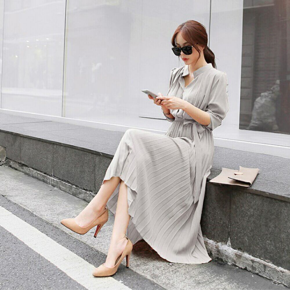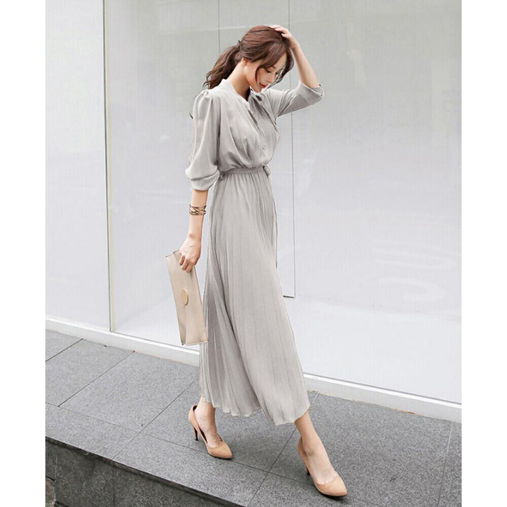 ワンピース レディース シャツワンピース プリーツワンピース ロングワンピース カジュアル シフォン 無地 体型カバー オシャレ クラシカル 大人可愛い きれいめ ベルト付き 通勤 春 秋 冬