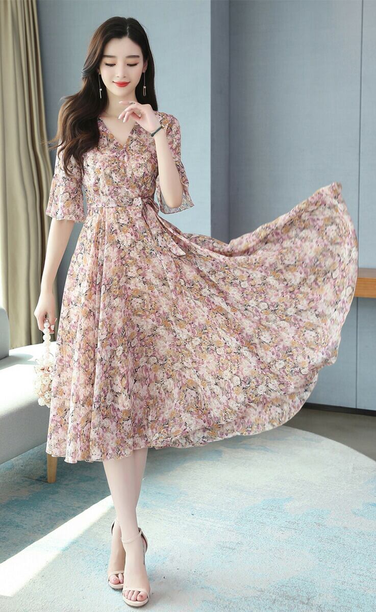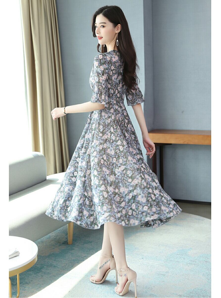 ワンピース レディース ドレス ミディアムワンピース 花柄ワンピース フレアワンピース 半袖レディースファッション ワンピース