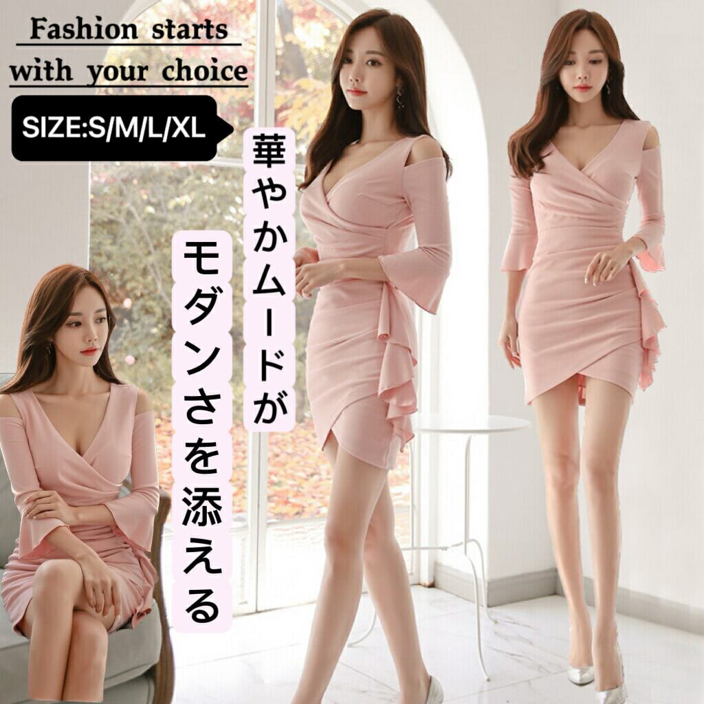 ワンピース ドレス カシュクールワンピース タイトワンピース ひざ丈ワンピース シースワンピース レディース Vネック きれいめ 美ライン 可愛い セクシー 七分袖 普段着