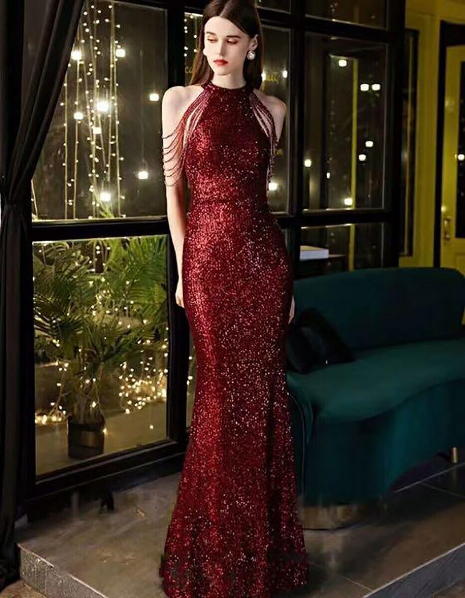 マーメイドワンピース フィッシュテールドレス 続々登場カラー: 赤色 杏色 サイズ: S M L XL