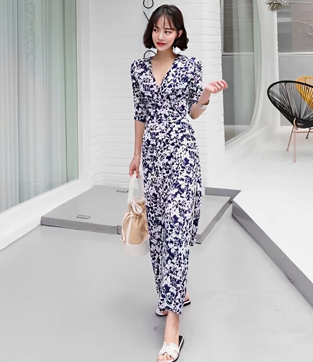 ワンピース エレガント フェミニン 巻きタイプ ロング 花柄レディースファッション ワンピース