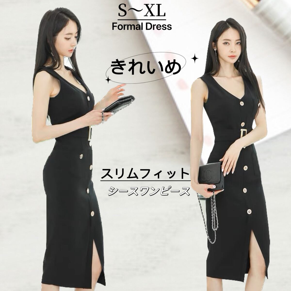 ワンピース ドレス ノースリーブ フォーマル タイト 膝丈ワンピース 韓国ファッション スリム パーティー 結婚式
