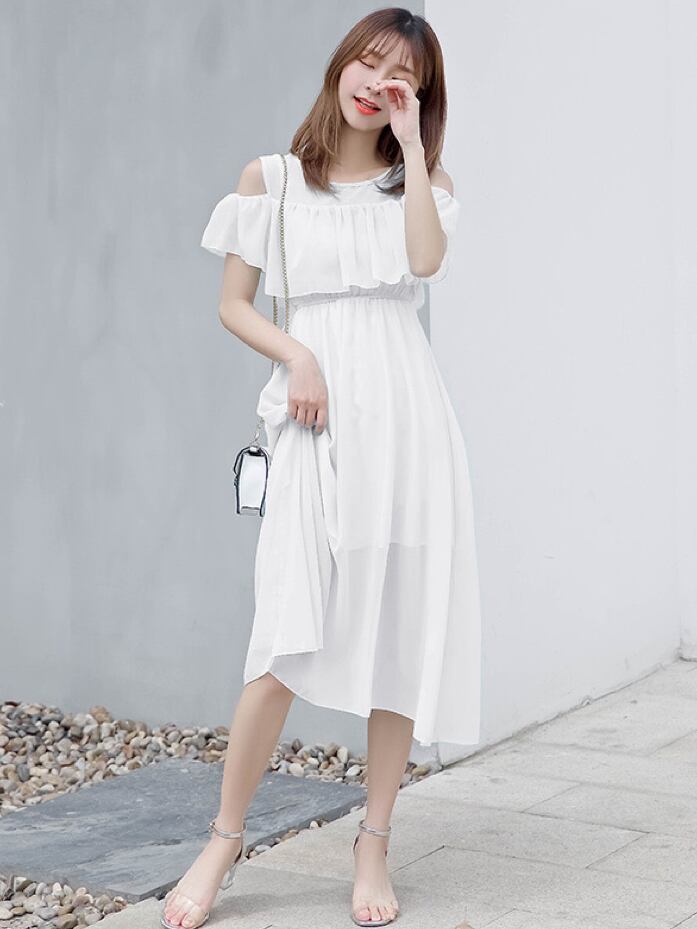 ワンピース 花柄ワンピース サマードレス リゾートワンピース レディース 夏 シフォン Aライン フレア きれいめ オフショルダー ミモレ 半袖 清楚