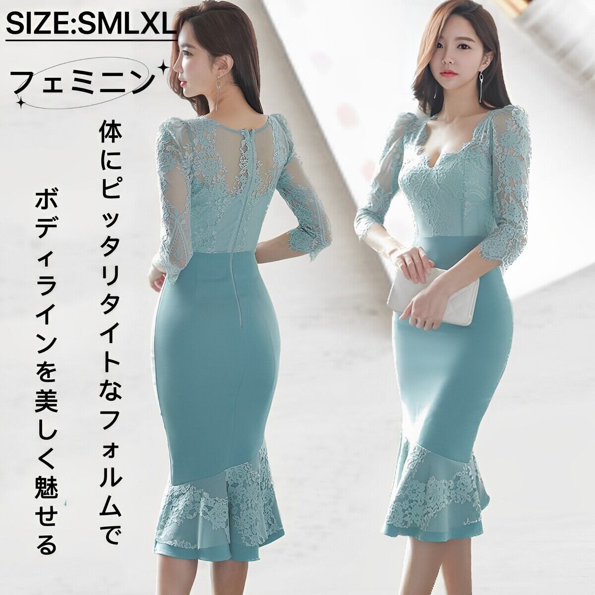 ドレス ワンピース レース スリム フェミニン パーティー 結婚式レディースファッション ワンピース