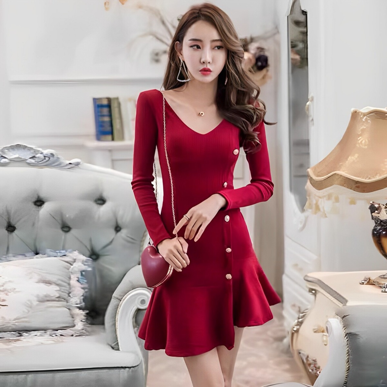 ワンピース ドレス ニットワンピーススリム タイト フェミニン 可愛い スタイル抜群 高品質レディースファッション ワンピース
