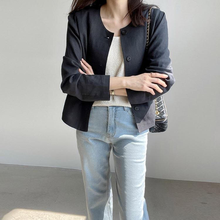 コート ナチュラル ノーカラー リネン ノーカラージャケット ボタン アウター コート ナチュリラ リンネル 麻