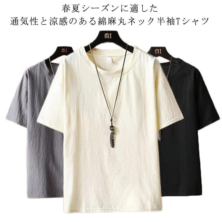メンズ おしゃれ カットソー 綿麻 tシャツ シンプル 吸汗速乾 半袖 リネン コットンメンズファッション トップス Tシャツ カットソー