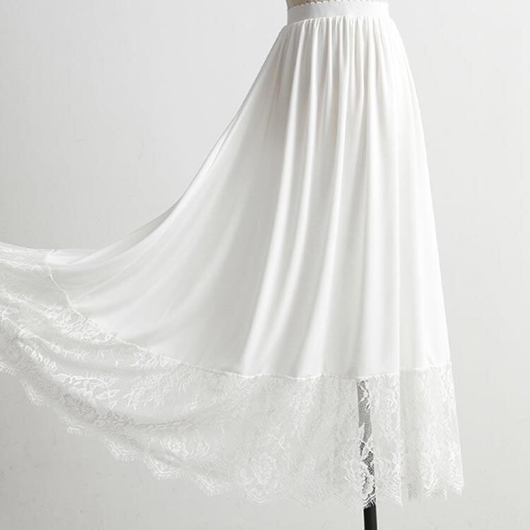 ロング ブラック ホワイト 黒 裾 レース 裾レース ペチスカート インナースカート レイヤード 可愛い 白