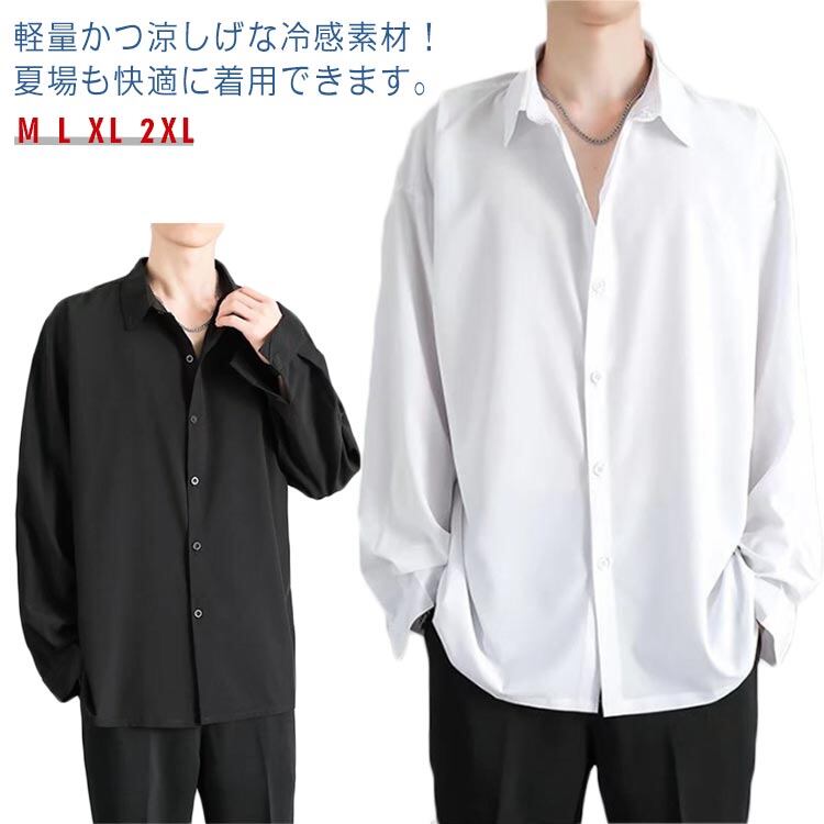 接触冷感 接触冷感 長袖 涼しい メンズ シャツ 黒 白メンズファッション トップス カジュアルシャツ