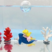 おもちゃんは浮遊球に接続され、水中を泳いでいるように見えます。