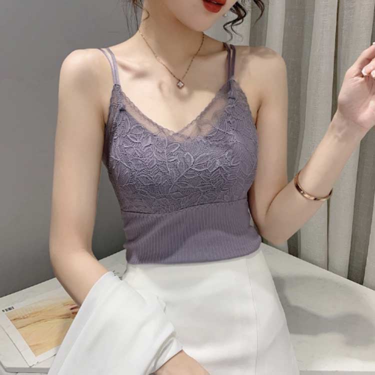 パッドが入っているので、インナーとしてそのまま1枚で着用したり、胸元の開いた服などチラ見せするのも可愛い♪